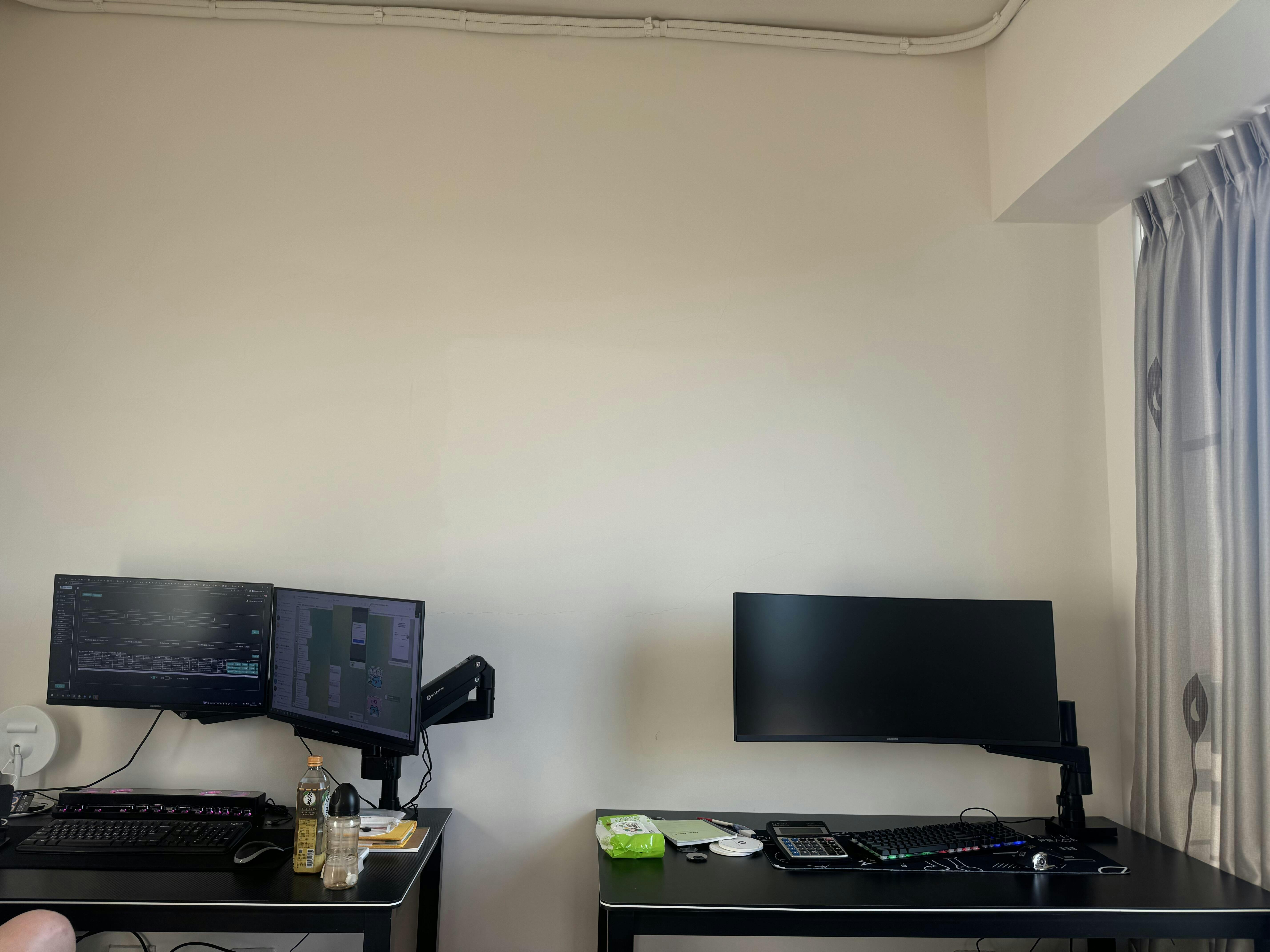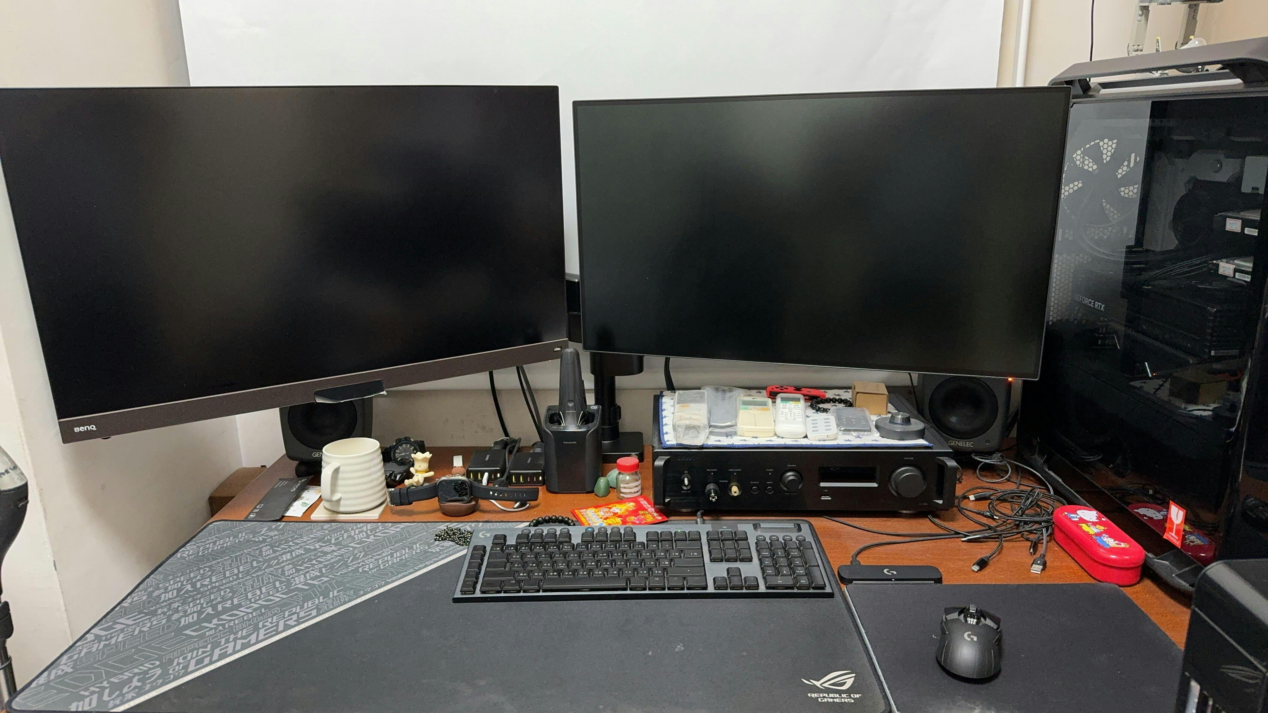 以前從來沒想過要用到螢幕支架,多年前才使用第一次,感想就是。。。桌面真的多了好多空間,自此就愛用螢幕支架了,但也就用單螢而己。